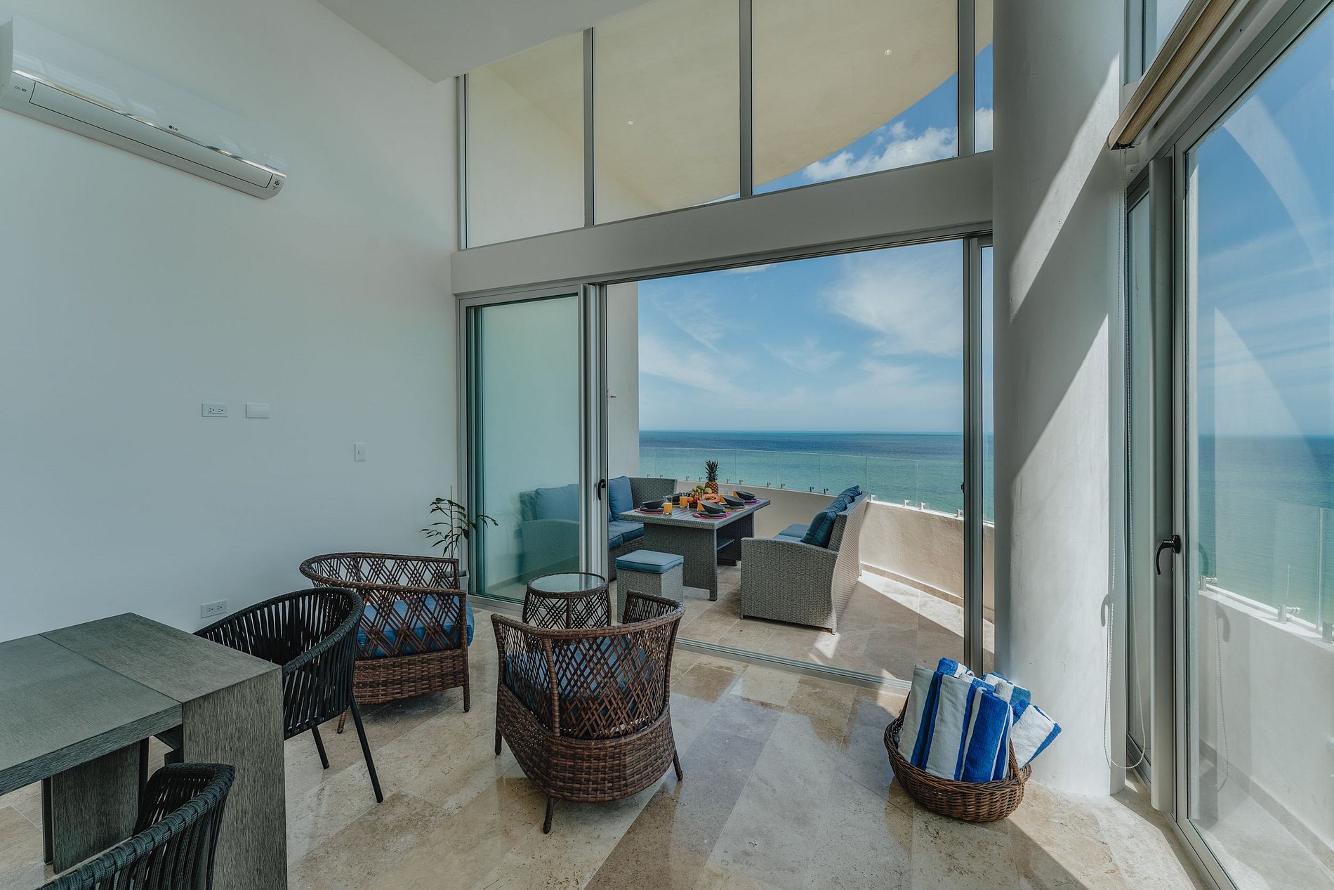 Este exquisito departamento de lujo frente al mar ofrece una experiencia sin igual. Desde el momento en que entras, quedas cautivado por las espectaculares vistas que se extienden a lo largo del horizonte. La cocina totalmente equipada invita a los aficionados culinarios a crear obras maestras mientras disfrutan del sonido relajante de las olas rompiendo en la costa. El comedor es un espacio acogedor, perfecto para reunirse en familia o simplemente para relajarse con vistas impresionantes.