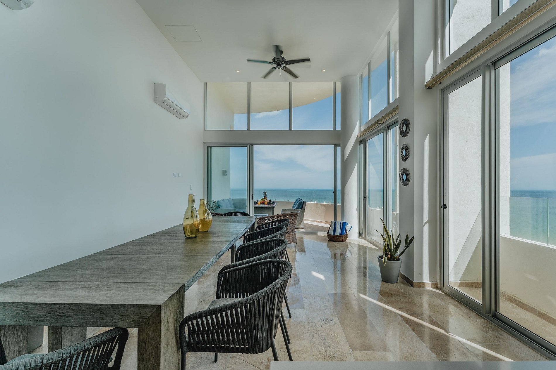 El balcón, con su comedor exterior, ofrece la oportunidad de cenar al aire libre mientras se maravilla con el espectáculo del océano. Con cuatro amplias habitaciones, cada una con su propio baño privado, este departamento brinda privacidad y comodidad incomparables para todos los huéspedes. En resumen, este departamento de lujo frente al mar combina elegancia, comodidad y vistas impresionantes para ofrecer una experiencia de hospedaje inolvidable. Los huéspedes pueden disfrutar de todas las áreas comunes, el complejo cuenta con alberca, área de hamacas, espacio para hacer fogata, gimnasio, estacionamiento privado, acceso directo a la playa.
