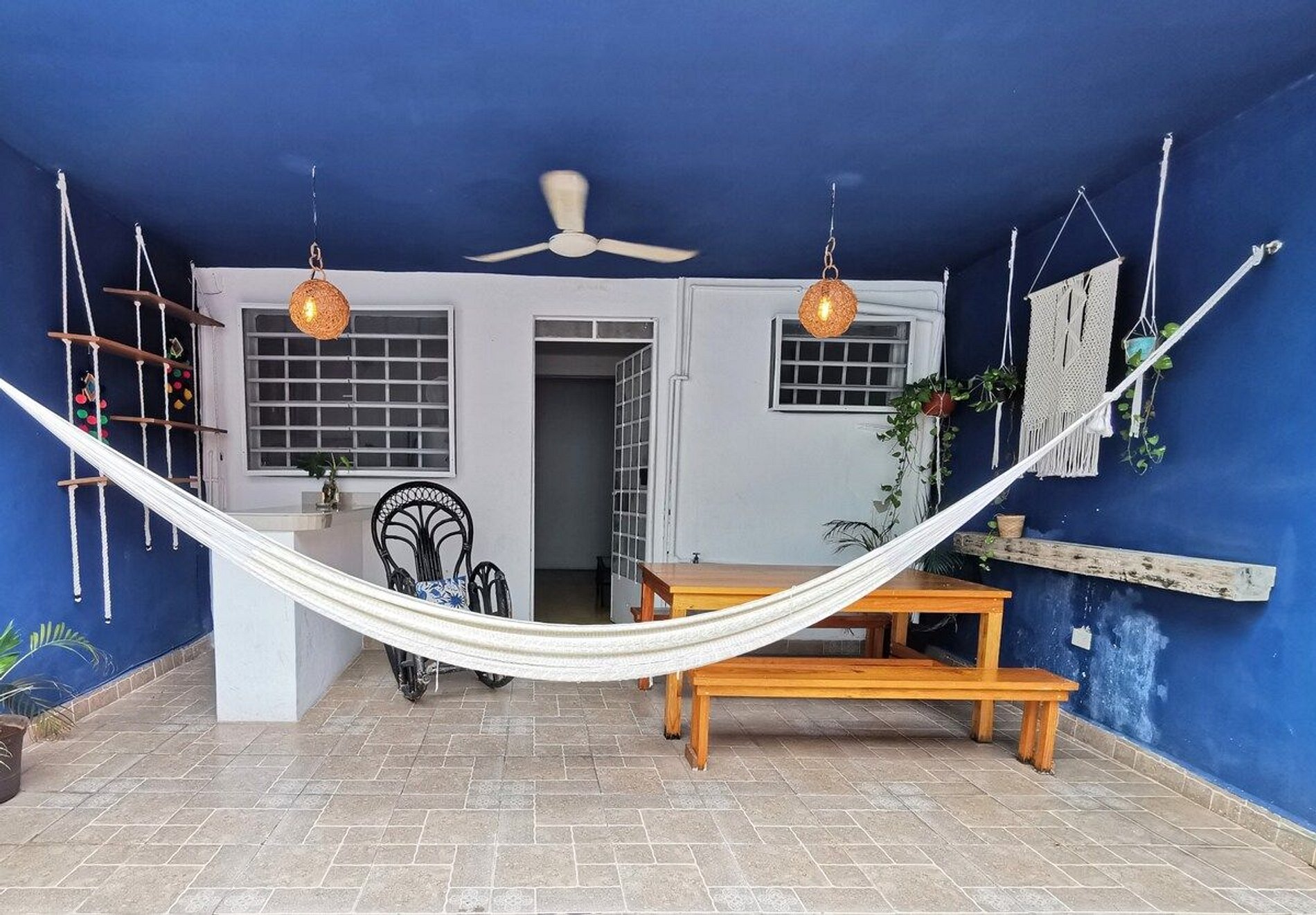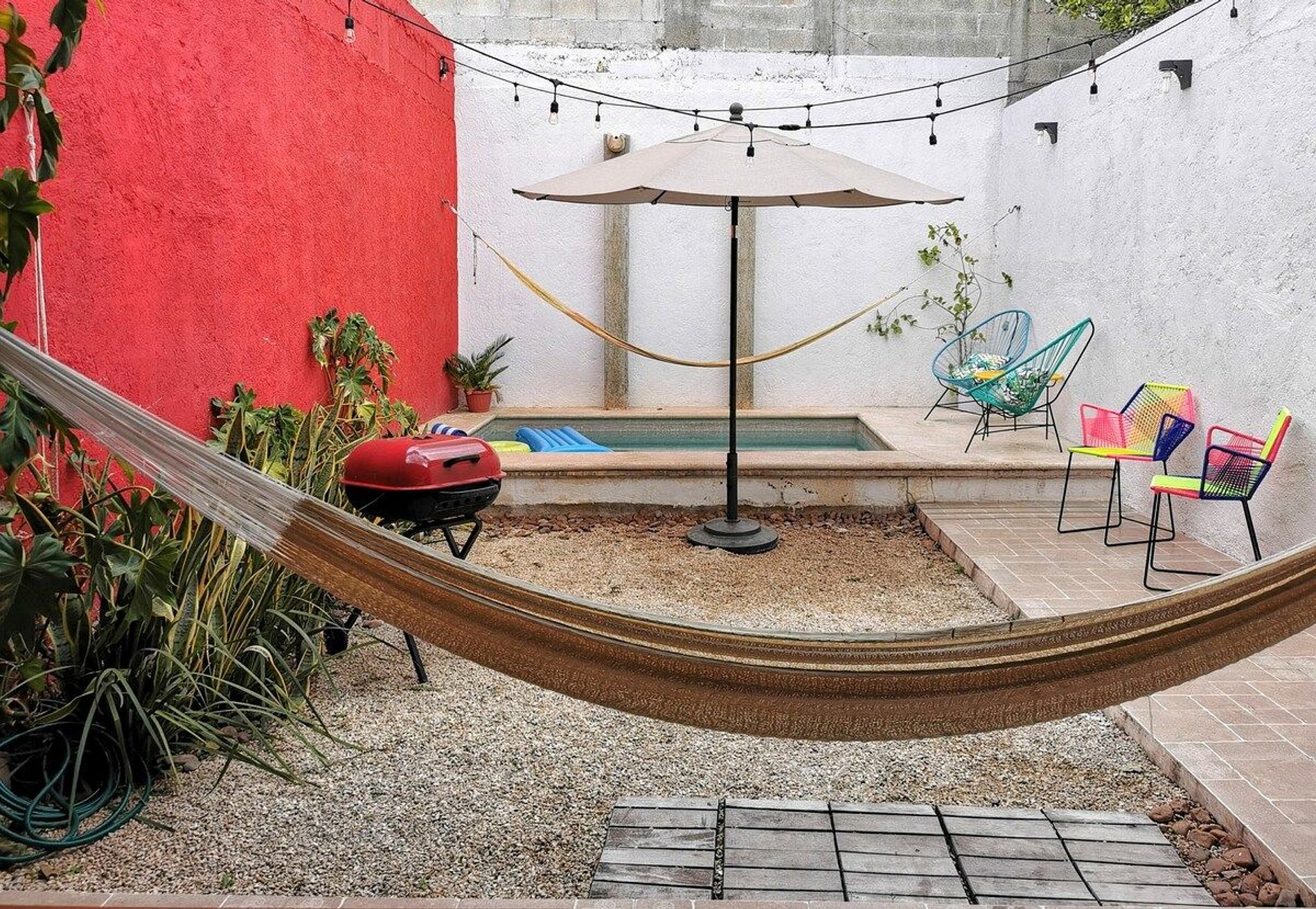 El garage cuenta con portón eléctrico y es perfecto para 1 auto compacto (de hasta 4.57 m de largo) La casa cuenta con dos recámaras, cada una de ellas con ventilador, Aire Acondicionado, Smart TV con cuenta de Netflix, ganchos para ropa y cajonera. Tiene un baño completo que cuenta con agua caliente; cocina equipada con refrigerador, parrilla eléctrica, microondas, licuadora, cafetera y lo necesario para poder cocinar. Lo mejor es la amplia terraza dónde podrás disfrutar al máximo desde un desayuno con vista a la piscina o hacer unas carnes al carbón, la casa cuenta con ASADOR DE CARBÓN!! Podrás tomar una siesta de una fresca hamaca junto a la piscina o tomar un café al atardecer!! La terraza es perfecta para disfrutar al máximo del calor de Mérida!