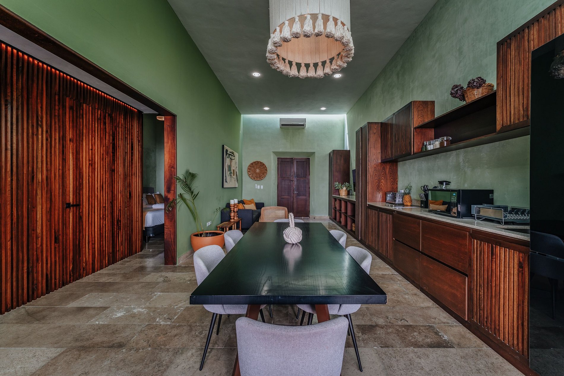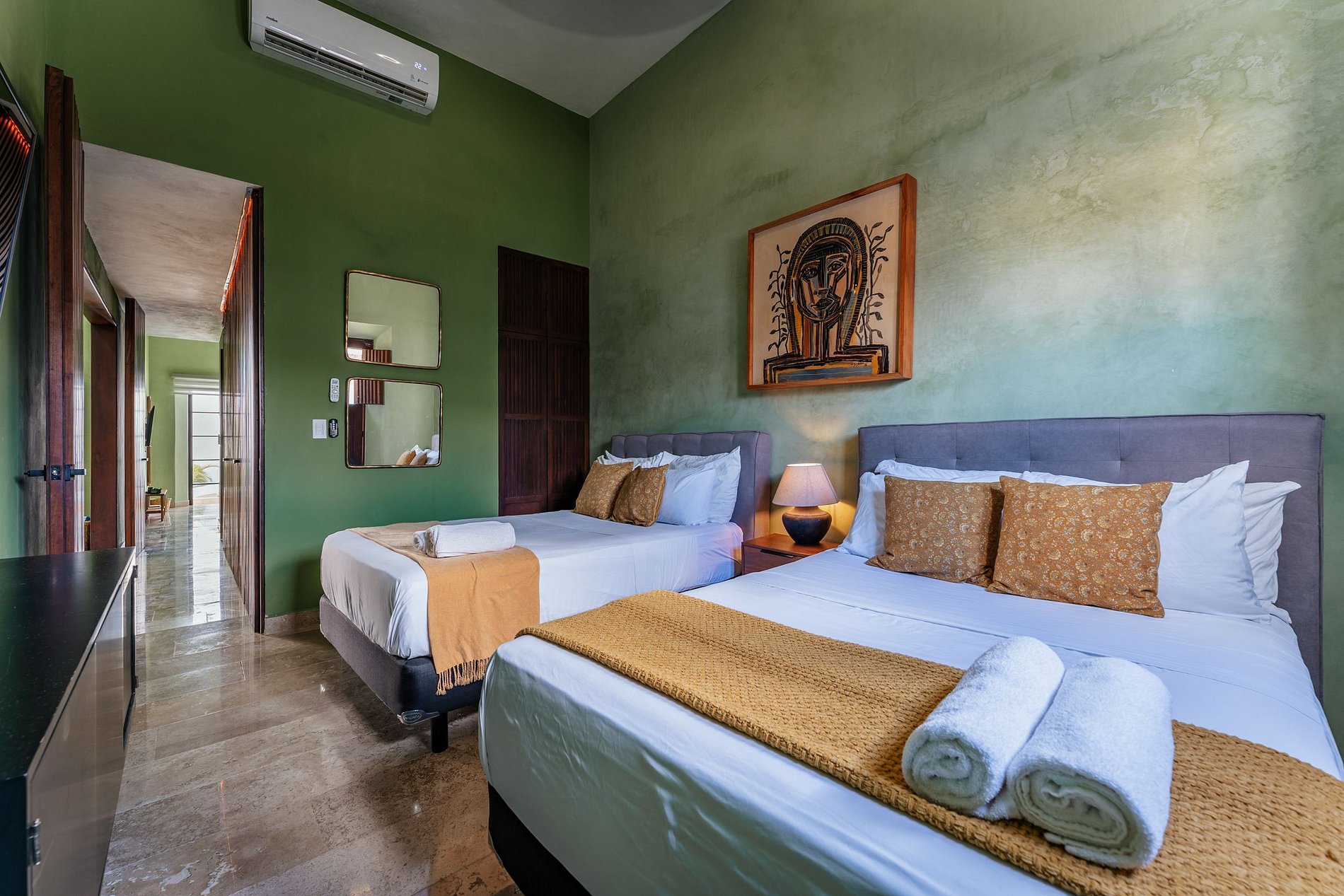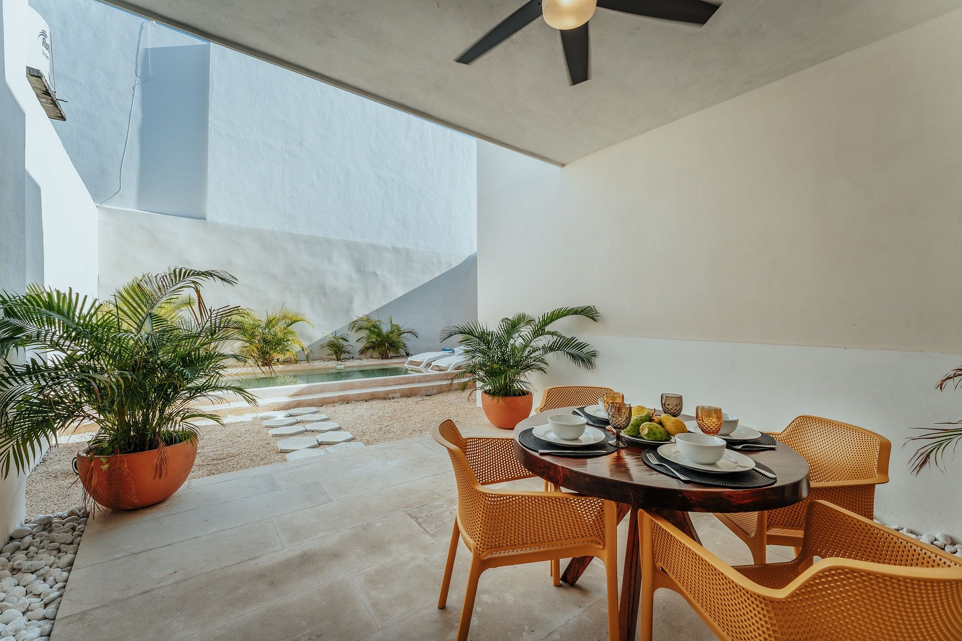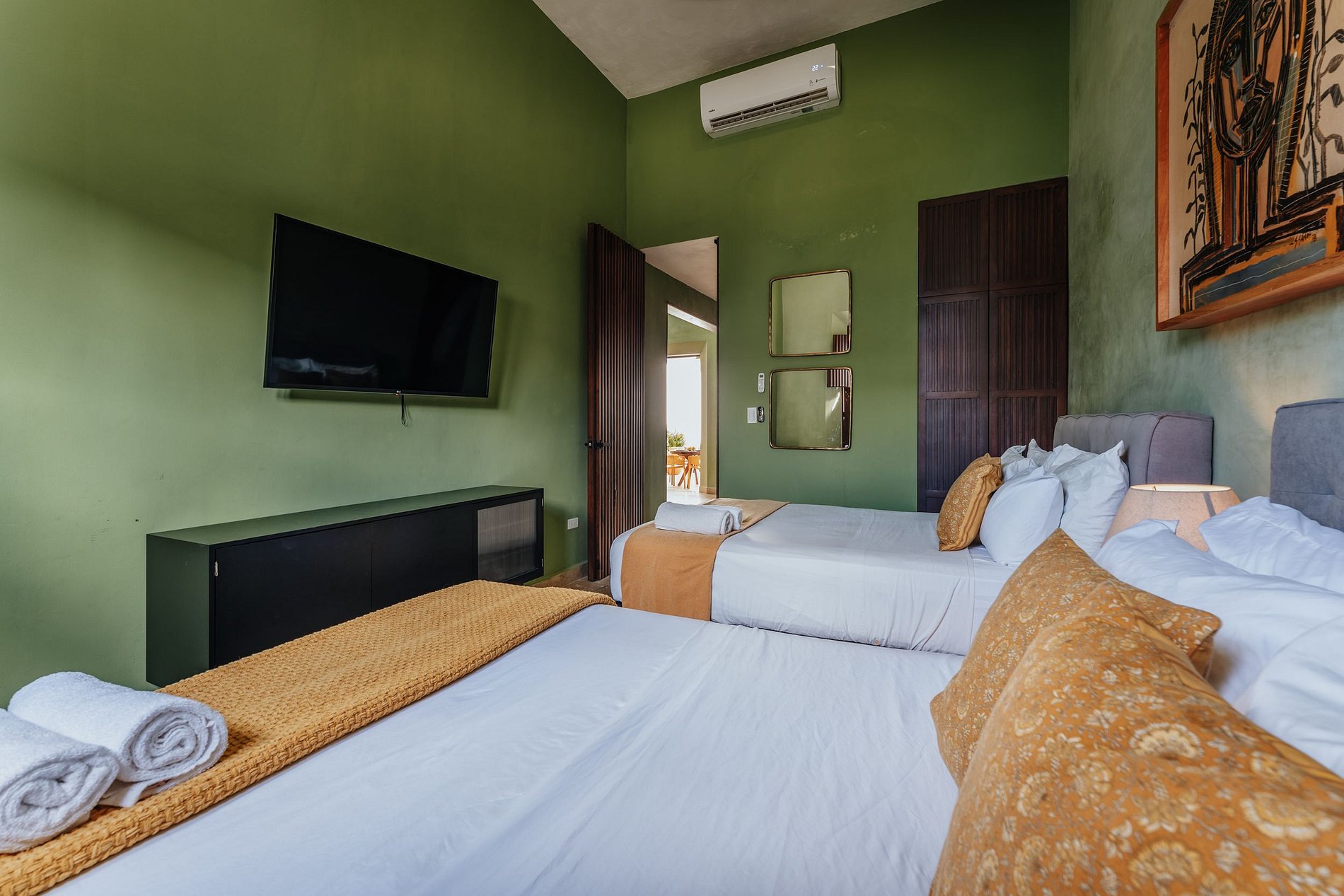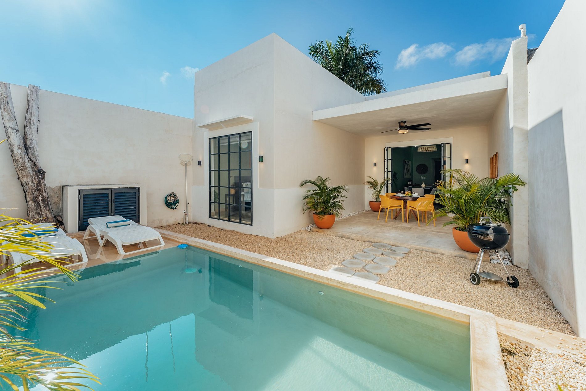 ¡Disfruta al máximo Casa Mara 53, el espacio es totalmente privado, no se comparte ningún área! La bienvenida a la casa te la dará la amplia sala, equipada con ventilador, aire acondicionado y SmartTV. La cocina es abierta al comedor y está totalmente equipada con parrilla eléctrica de inducción, refrigerador, horno microondas, hornillo eléctrico, cafetera, licuadora, sandwichera y todos los utensilios necesarios para cocinar. Justo en frente está la amplia mesa de comedor con vistas a la terraza, podrás disfrutar de su luz natural. Una de las habitaciones tiene 1 cama tamaño king y baño completo, y la otra, 2 camas matrimoniales. Ambas tienen ventilador, aire acondicionado, Smart TV y closet. La terraza es perfecta para disfrutar en los días de eterno verano que la península de Yucatán nos regala. Refréscate en la piscina y disfruta de un desayuno al aire libre.