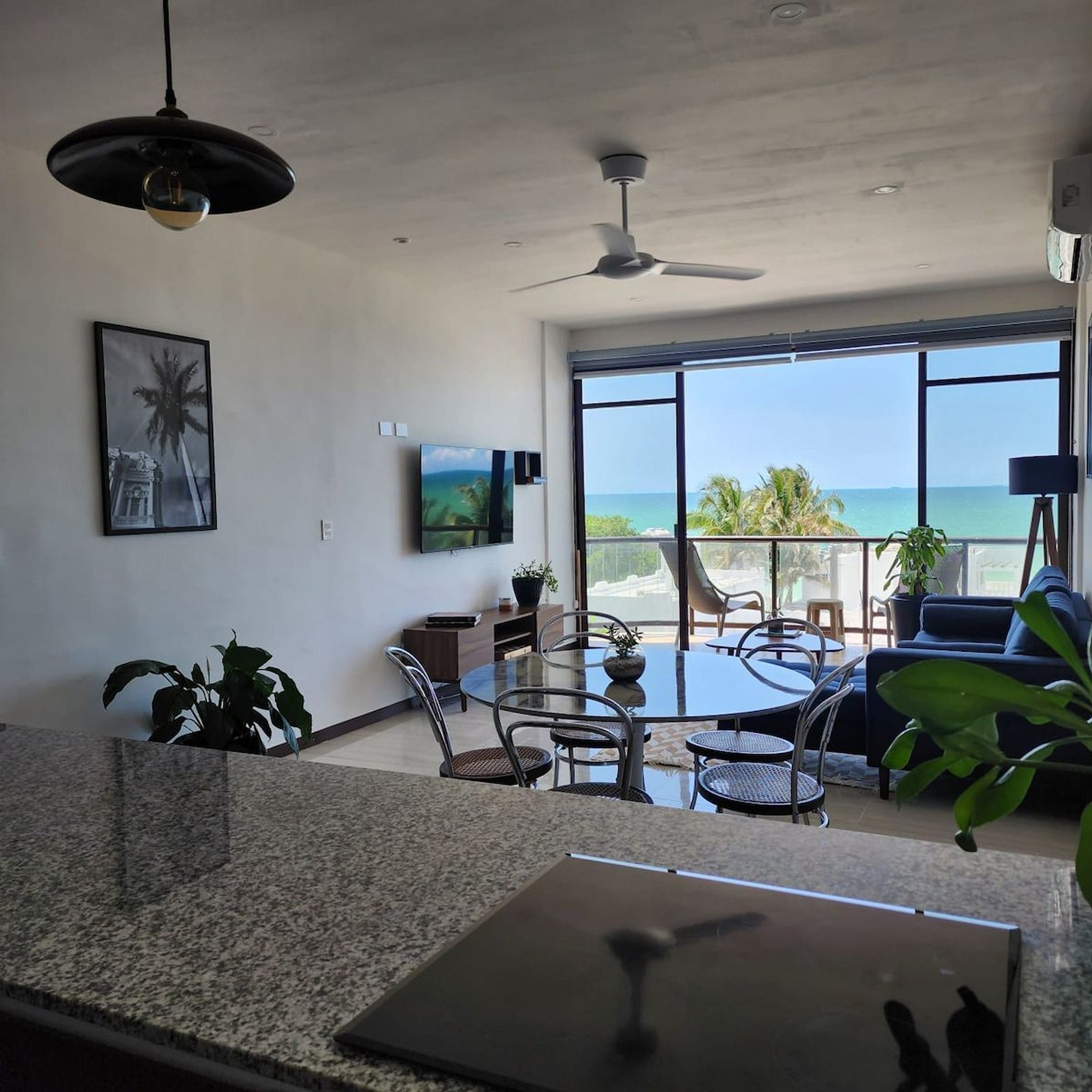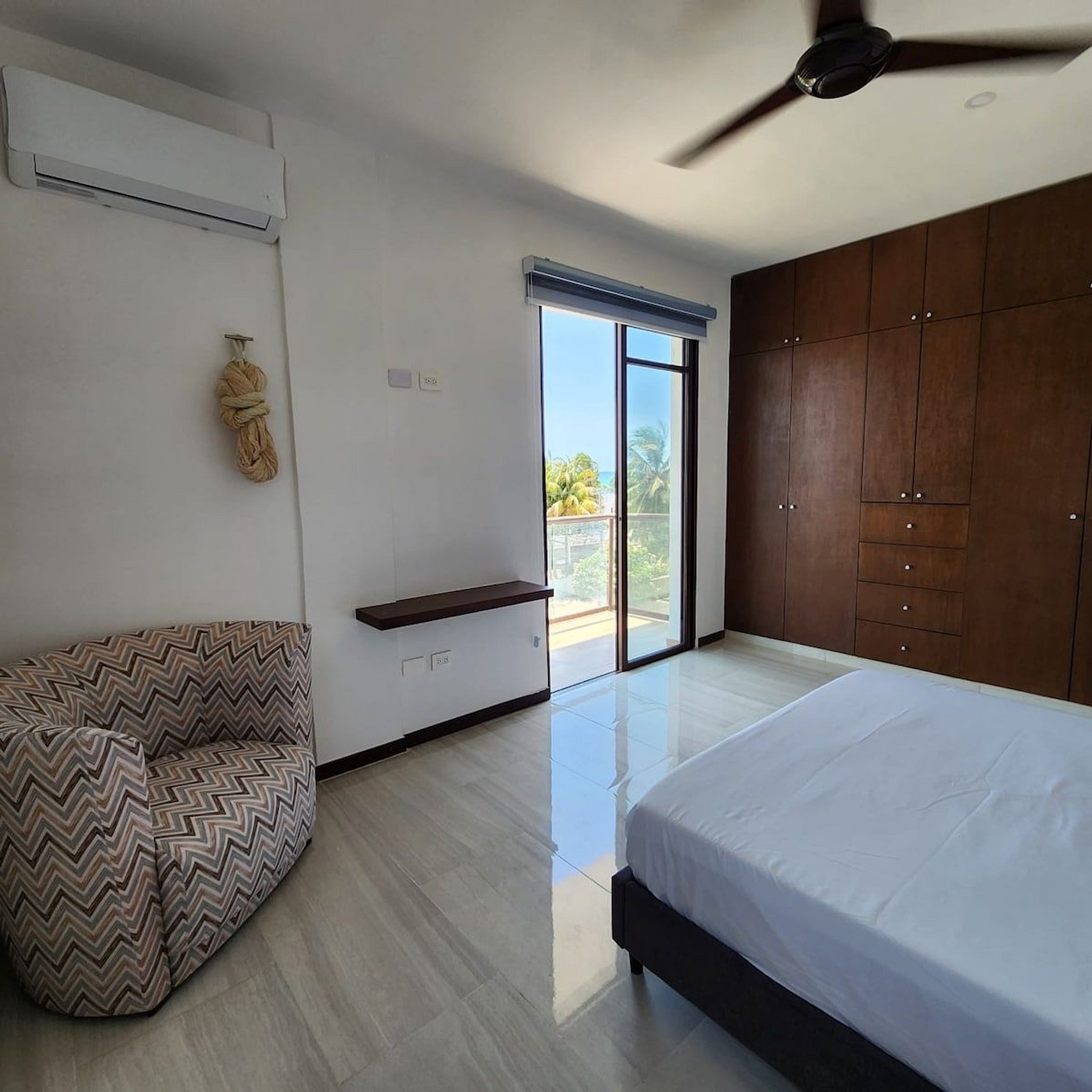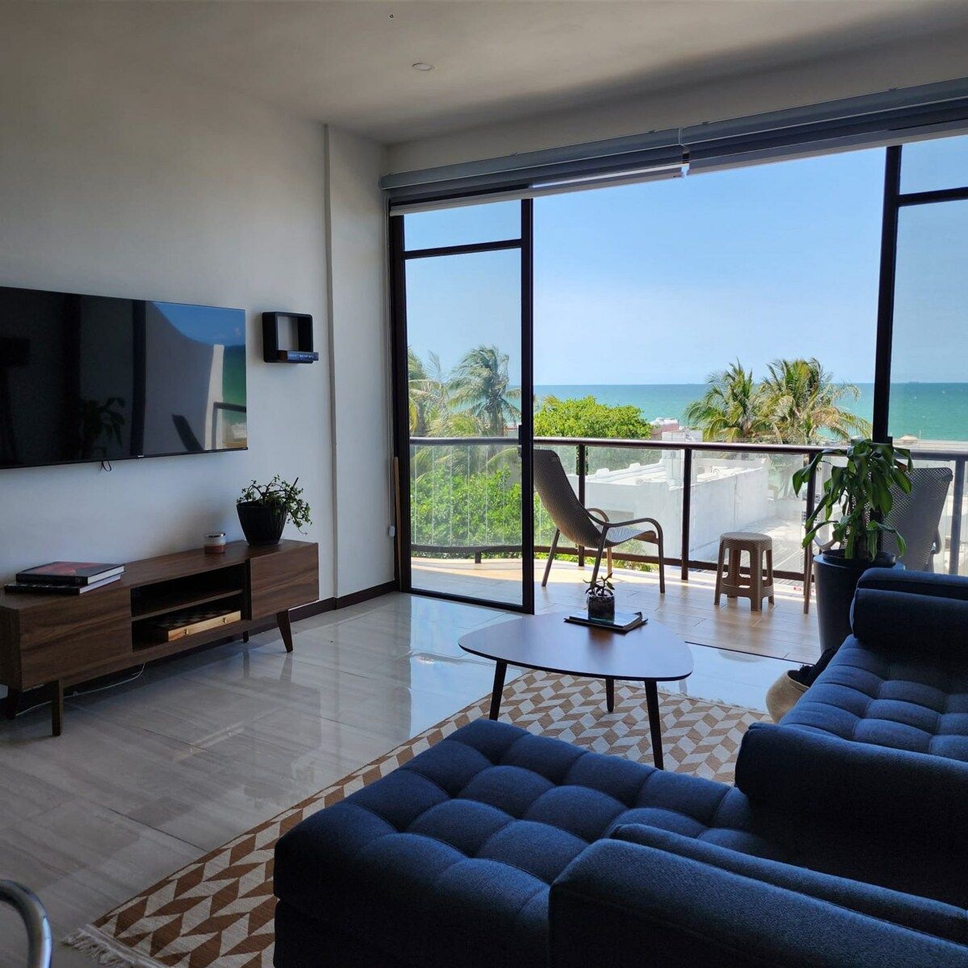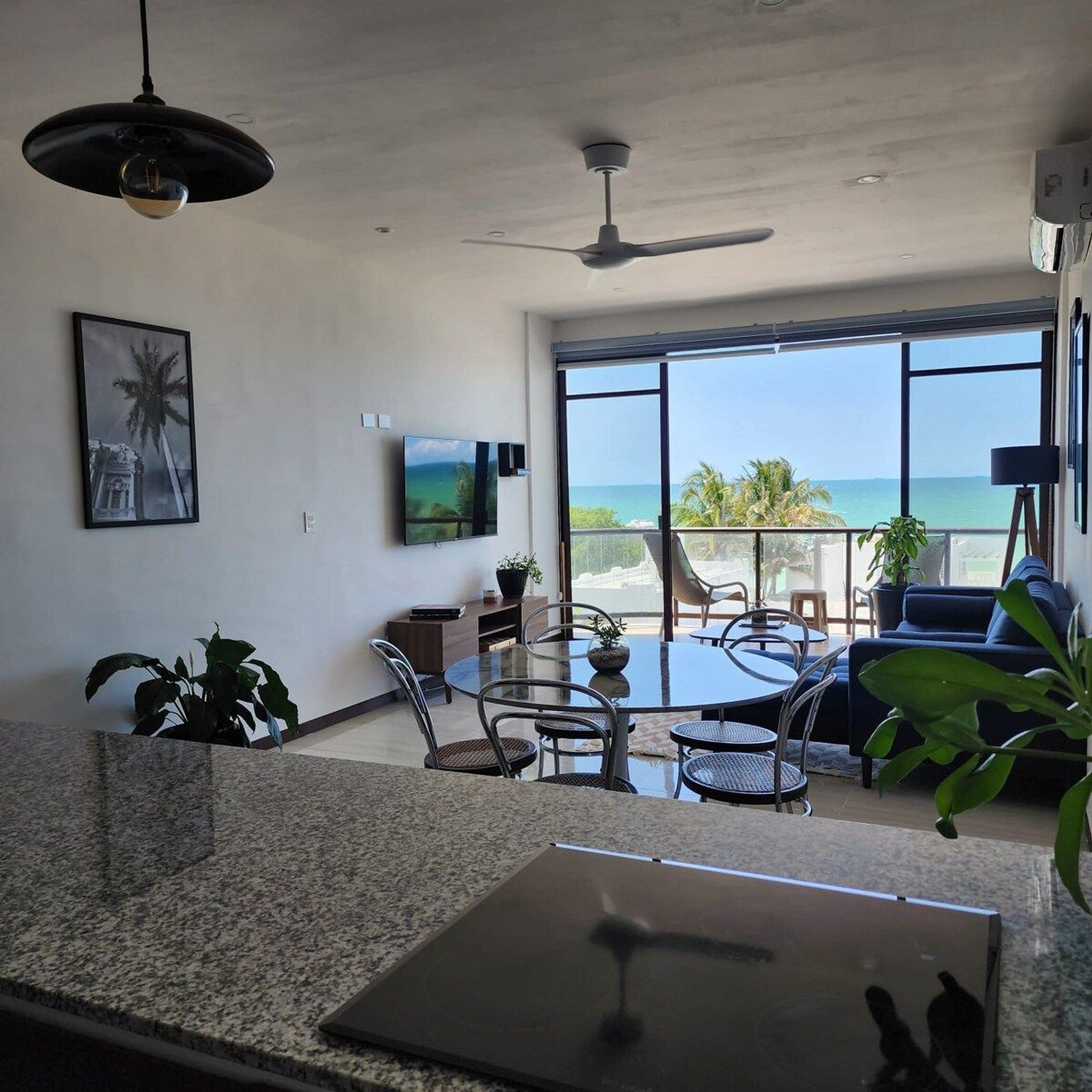 El alojamiento Ubicado en el cuarto piso, disfrutarás de una vista espectacular del hermoso mar de Yucatán... ¡No te preocupes, el edificio cuenta con elevador! El departamento es para 4 personas, cuenta con dos recámaras y dos baños completos. Cocina totalmente nueva y equipada, con comedor y sala. En esa área hay un smart tv y aire acondicionado. Recámara 1: Una cama Queen Hamaquero Baño privado Recámara 2: Una cama Queen Hamaqueros Baño privado Todas las recámaras cuenta con ventilador de techo, aire acondicionado y persianas black out. El edificio cuenta con dos albercas. Una está en la planta baja, donde también se encuentran áreas de uso común con otros huéspedes. Podrás disfrutar de todo el mobiliario (sillas, mesas, camastros). ¡La segunda alberca se encuentra en el rooftop (solo para adultos), la vista es espectacular! También podrás disfrutar de todo el mobiliario, está zona es exclusiva para adultos. Acceso para huéspedes Los huéspedes tienen acceso a todas las áreas en común. La terraza en el rooftop es exclusiva para adultos.