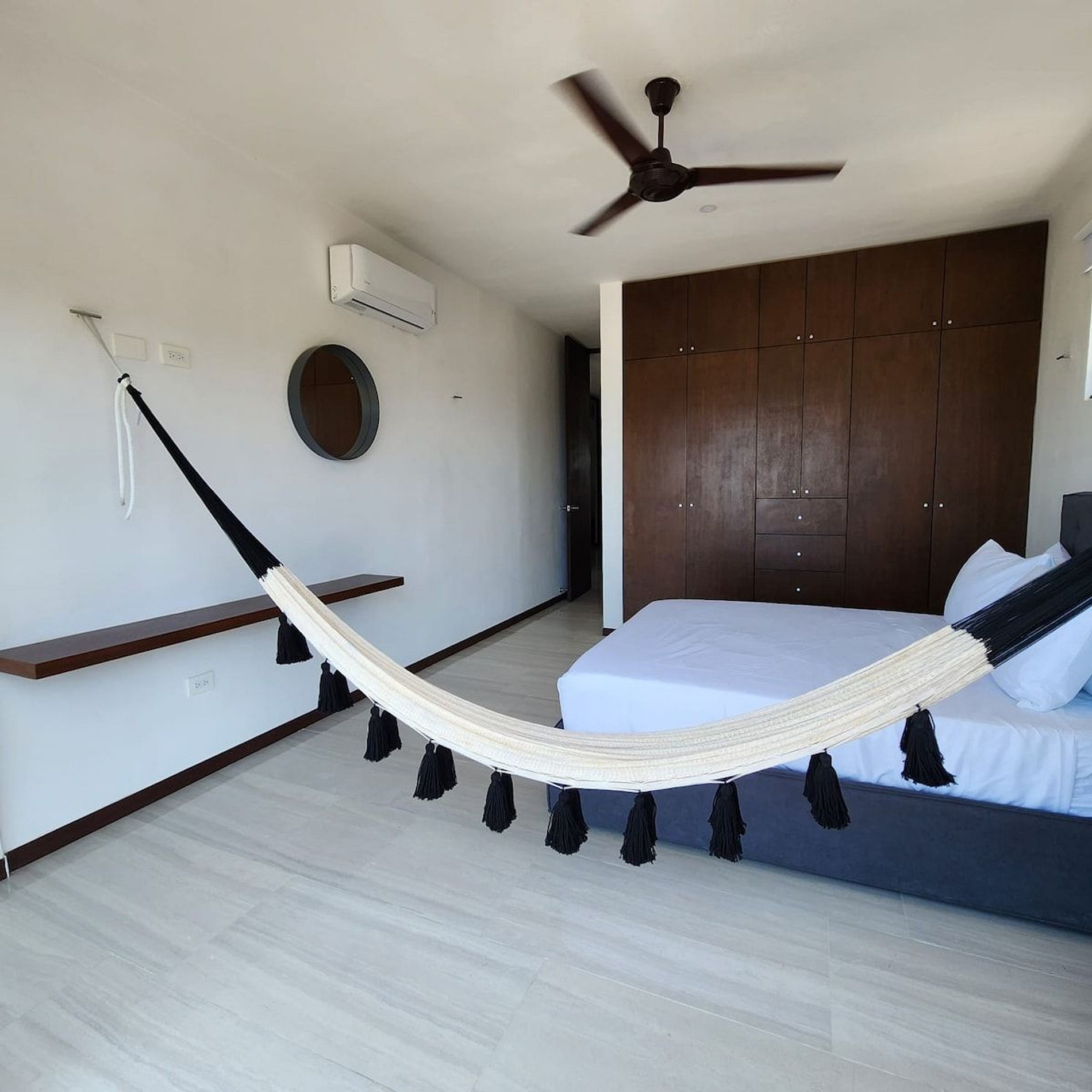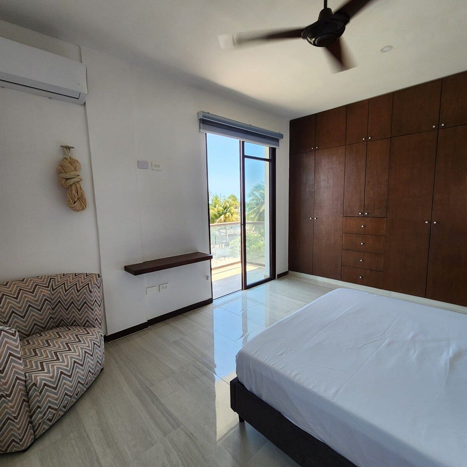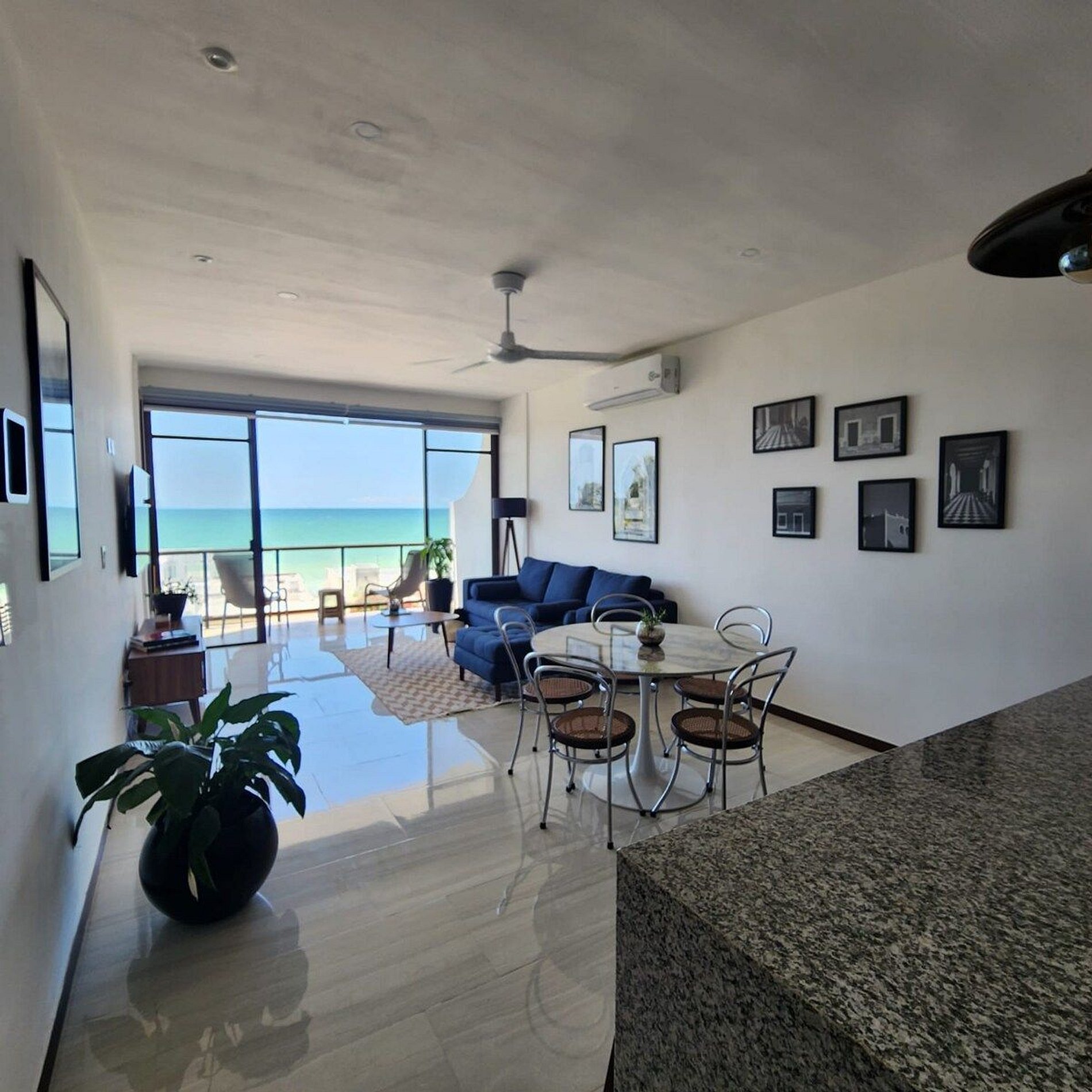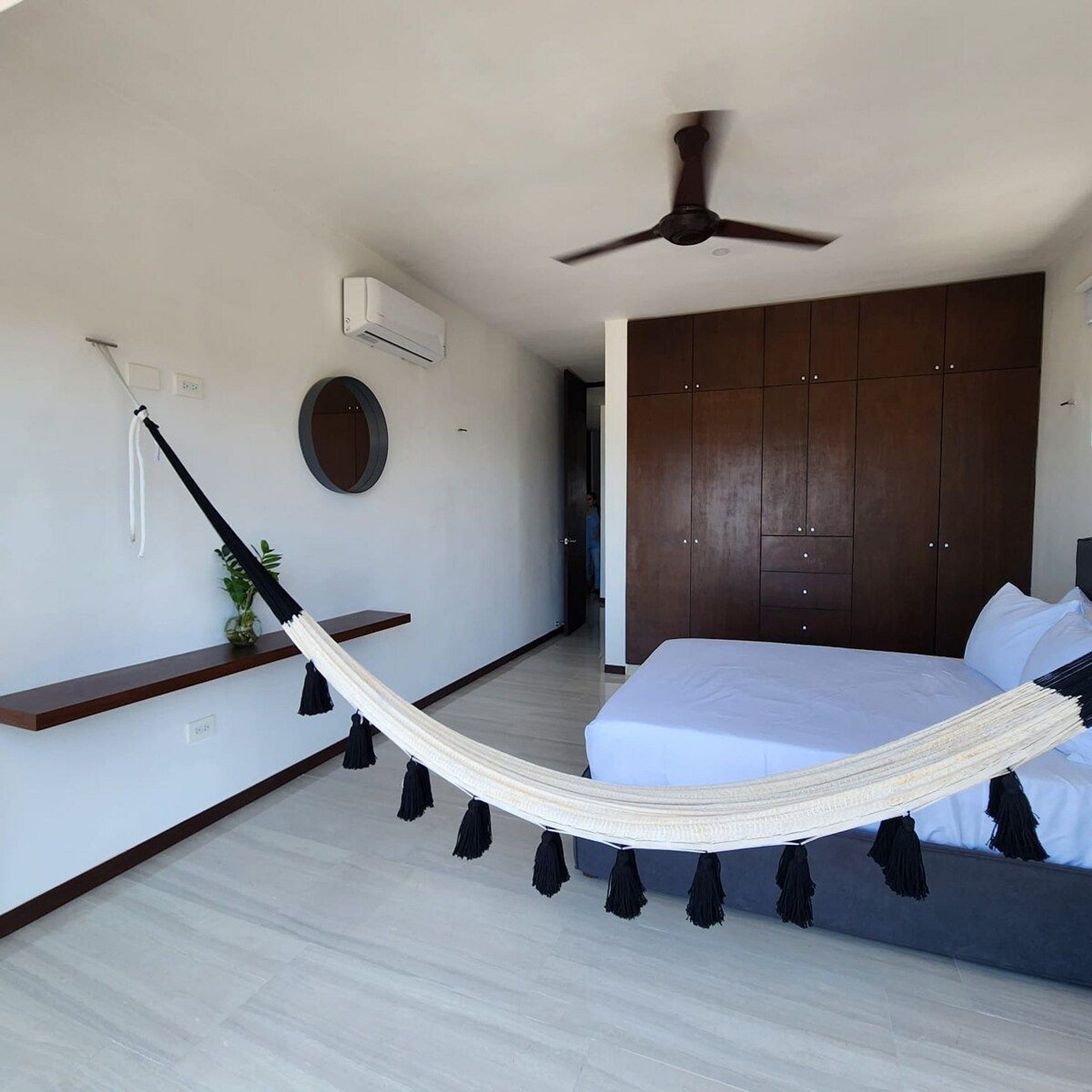 El alojamiento Ubicado en el cuarto piso, disfrutarás de una vista espectacular del hermoso mar de Yucatán... ¡No te preocupes, el edificio cuenta con elevador! El departamento es para 4 personas, cuenta con dos recámaras y dos baños completos. Cocina totalmente nueva y equipada, con comedor y sala. En esa área hay un smart tv y aire acondicionado. Recámara 1: Una cama Queen Hamaquero Baño privado Recámara 2: Una cama Queen Hamaqueros Baño privado Todas las recámaras cuenta con ventilador de techo, aire acondicionado y persianas black out. El edificio cuenta con dos albercas. Una está en la planta baja, donde también se encuentran áreas de uso común con otros huéspedes. Podrás disfrutar de todo el mobiliario (sillas, mesas, camastros). ¡La segunda alberca se encuentra en el rooftop (solo para adultos), la vista es espectacular! También podrás disfrutar de todo el mobiliario, está zona es exclusiva para adultos. Acceso para huéspedes Los huéspedes tienen acceso a todas las áreas en común. La terraza en el rooftop es exclusiva para adultos.